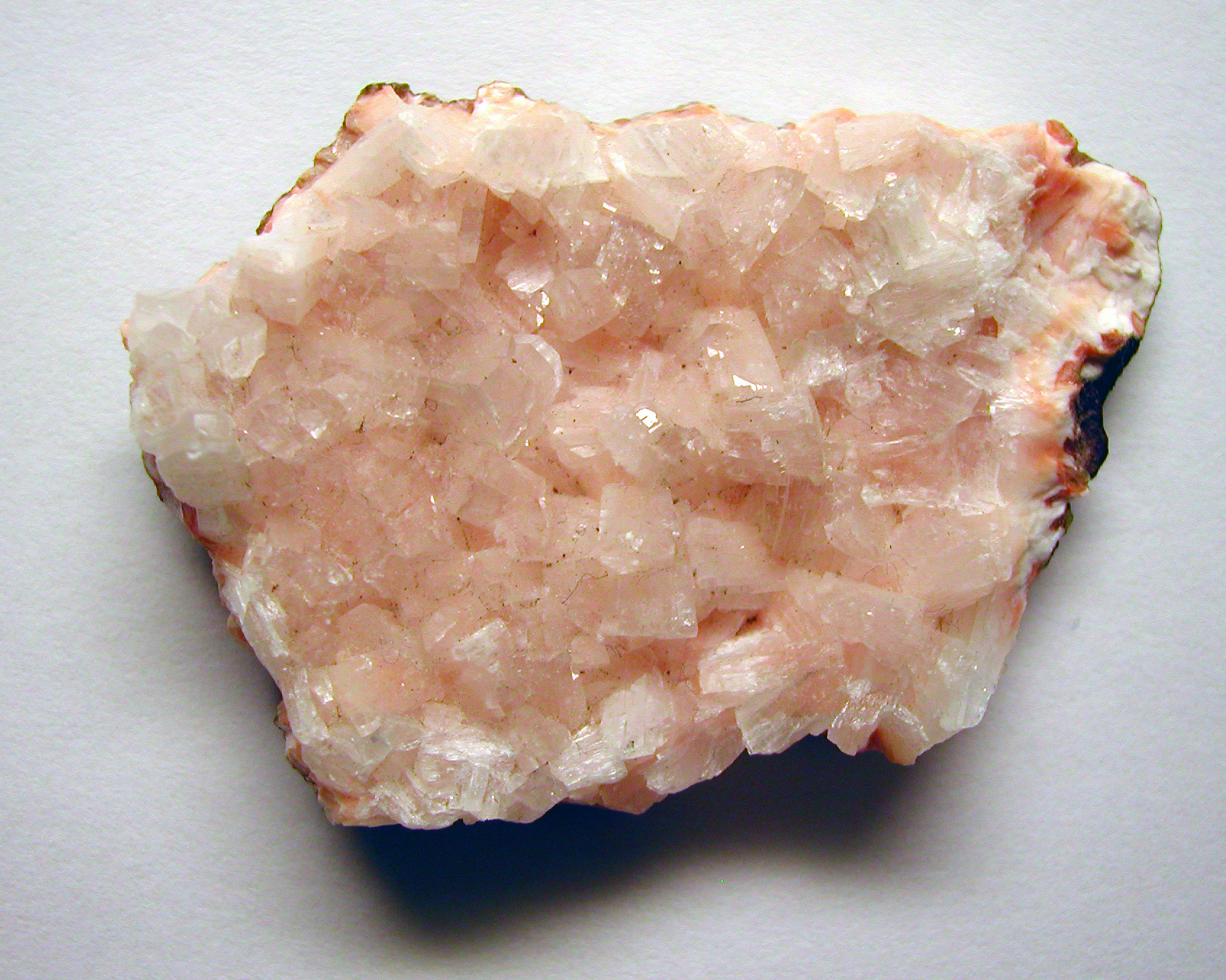 MINERALOGY, PROPERTIES, OCCURRENCE: Heulandite-(Ca) [hydrous calcium sodium potassium aluminosilicate, (Ca0.5,Na,K)(Al9Si27O72)•~24H2O] crystallizes in the monoclinic system, usually as well-formed, coffin-shaped crystals; single tabular crystals; radiating aggregates of parallel crystals; and in foliated, granular, and globular forms. It is translucent to transparent and most often white, but also exhibits pale shades of green, peach, and orange. Heulandite-(Ca) has a Mohs hardness of 3.5-4.0, perfect cleavage in one direction, a vitreous-to-pearly luster, and a specific gravity of 2.1-2.3. It is a zeolite mineral that occurs mainly in amygdaloidal cavities in basalt.